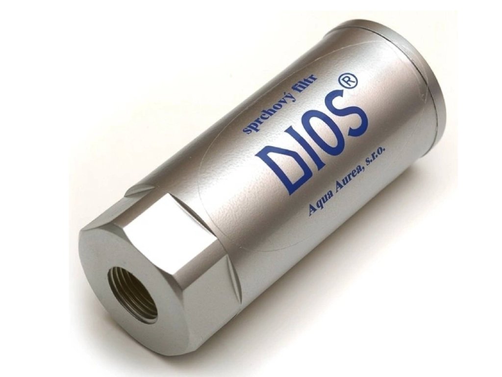 Sprchový filtr Dios se vyznačuje 3-stupňovou filtrací: mechanické nečistoty zachycují textilní přepážky, další filtrační hmoty (granule slitiny kovů, keramické kuličky) jsou zaměřeny na odstranění chloru, bakterií a tvrdosti a vzájemně se vhodně doplňují. Nově obsahuje sprchový filtr DIOS nejen granule slitiny kovů, ale také keramické dechlorační kuličky s podstatně vyšší účinností. Jsou vyrobeny z vysoce kvalitního siřičitanu vápenatého, snižují povrchové napětí vody, odstraní nepříjemnou chuť, zápach a přeměňují okamžitě chlor na neškodnou sůl. Účinnost je více než 95 %.To umožňuje mimo jiné i zefektivnění pěnění mýdla a šamponů.