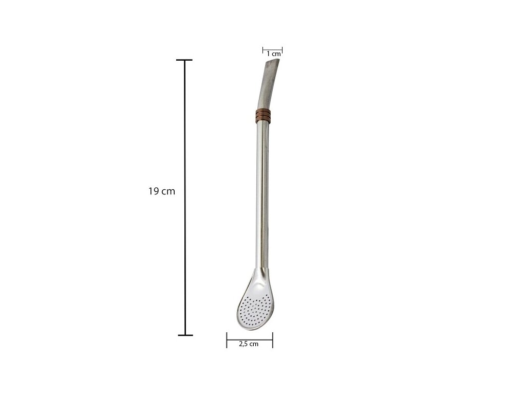 Jedna z nejpopulárnějších bombílii mezi příslušenstvím pro yerba mate. Precizně vyrobena, lehce zakřivená pro lepší účinky. Tato prostá konstrukce umožňuje dobré filtrování a bezproblémovou konzumaci téměř každého druhu yerba mate.Specifikace
