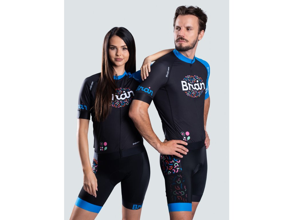 Brain unisex cyklistický set, dres a kraťasy, černý Černý cyklistický dres s kraťasy