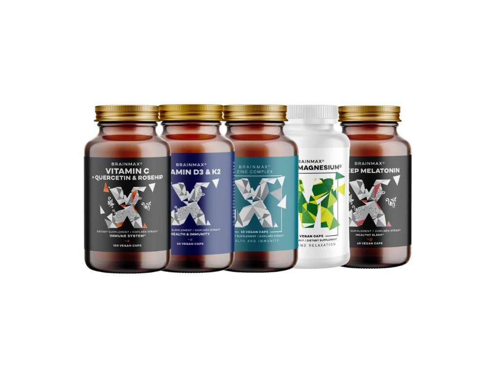 BrainMax 2v1: Spánek a Imunita, výhodný balíček + doprava zdarma Balíček pro podporu imunity s vitamínem D3, C a hořčíkem, doplněk stravy