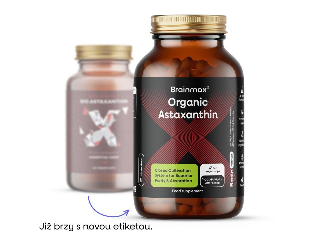 BrainMax Astaxanthin (Astaxantin) BIO, 8 mg, 60 rostlinných kapslí Doplněk stravy, *CZ-BIO-001 certifikát