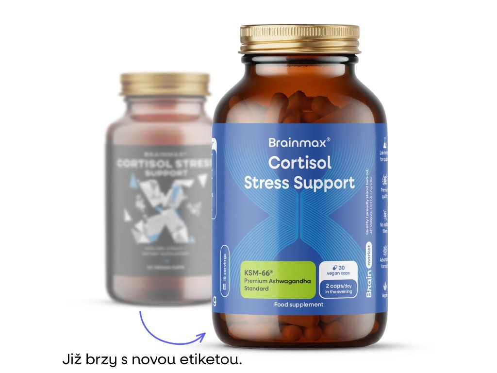 BrainMax Cortisol Stress Support, komplex pro podporu duševního zdraví, 30 rostlinných kapslí Evidence-based složení pro klid, podporu relaxace, koncentrace a duševního zdraví, doplněk stravy