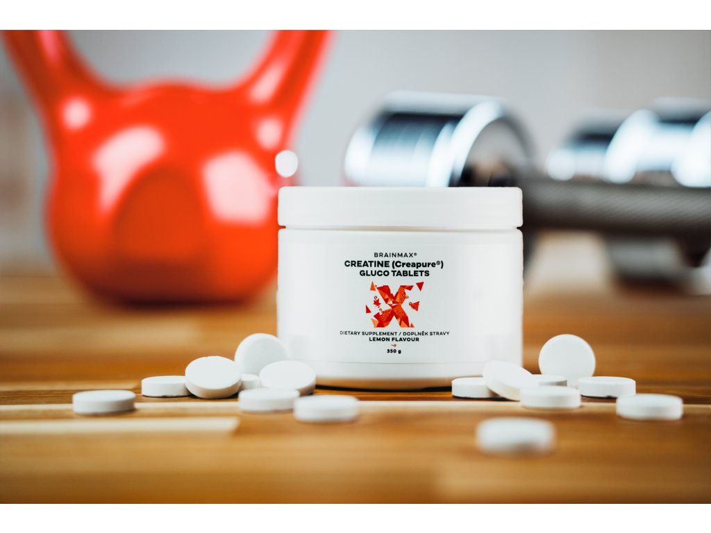 BrainMax Creatine Creapure® Gluco tablets, Lemon, Kreatin monohydrát tablety, Citrón, 350 g, 115 tablets Patentovaný kreatin Creapure® v citrónových tabletách s glukózou, doplněk stravy