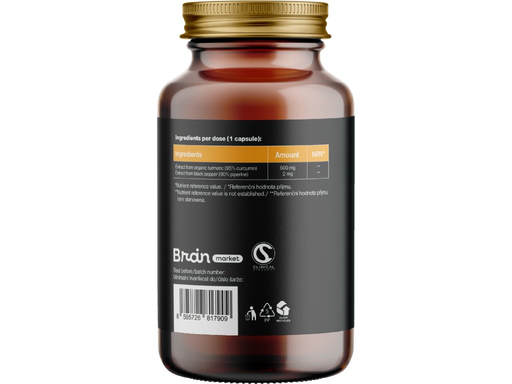 BrainMax Curcumin & Piperine staví na jednoduchém a současně vysoce účinném principu, nabídnout tělu koncentrovanou sílu přírodních extraktů v jejich nejčistší podobě. Jeden z nejkoncentrovanšjších extraktů z organické kurkumy na trhu, který je doplněný 90% piperinem z černého pepře, u kterého studie ukazují, že může ovlivňovat metabolismus kurkuminu. Každá kapsle je veganská, bez zbytečných aditiv a navržena tak, aby podporovala tělo čistým přírodním způsobem.