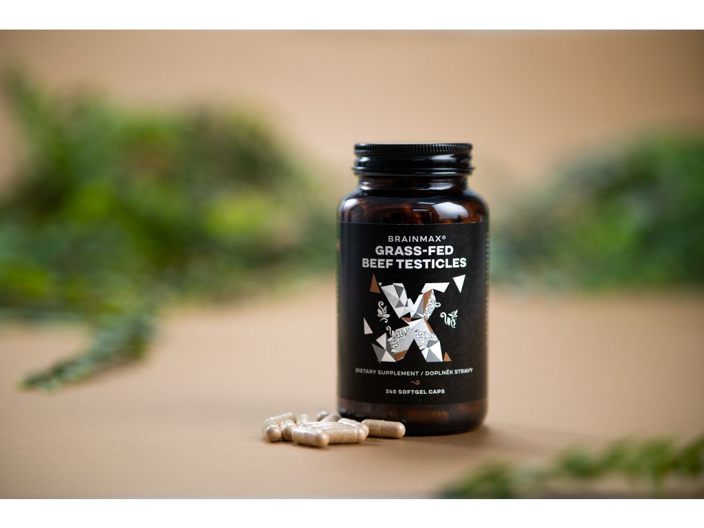 BrainMax Grass-Fed Beef testicles, hovězí varlata, 240 kapslí Lyofilizované grass-fed hovězí varlata v kombinaci s extraktem z ústřicového masa a hovězích jater, doplněk stravy