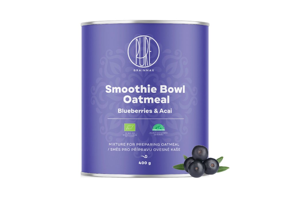 BrainMax Pure Ovesná kaše, acai a borůvky, BIO, 400 g Zdravá snídaně s bezlepkovou smoothie bowl kaší/ *CZ-BIO-001 certifikát