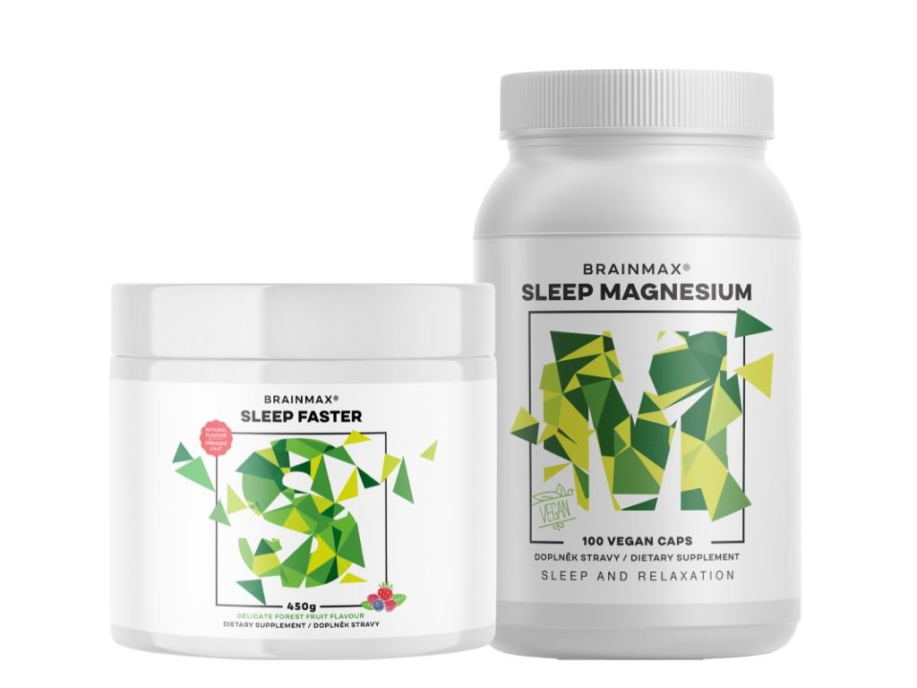 BrainMax Sladké sny Doplňky stravy pro podporu spánku - Sleep Faster + Sleep Magnesium®, 320 mg, 100 kapslí (Hořčík, GABA, L-theanin, Vitamín B6, šťáva z višně)
