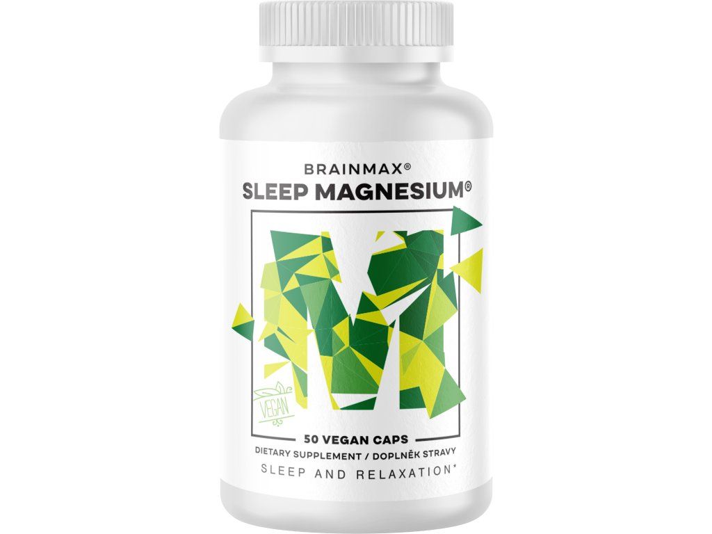 BrainMax Sleep Magnesium®, 250 mg, 50 rostlinných kapslí Komplex pro podporu snížení míry únavy a vyčerpání, večerní relax, doplněk stravy