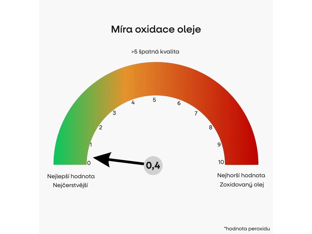 Čerstvost rybího oleje je klíčovým ukazatelem jeho kvality a využitelnosti v organismu. Jedním z hlavních parametrů, který tuto čerstvost určuje, je peroxidové číslo – hodnota ukazující míru oxidace oleje. Čím nižší číslo, tím čerstvější, stabilnější a biologicky hodnotnější omega-3 mastné kyseliny. Naše omega-3 má peroxidové číslo pouhých 0,4, což potvrzuje její mimořádnou čerstvost, stabilitu a vysokou kvalitu, která ji odlišuje od běžných doplňků na trhu.