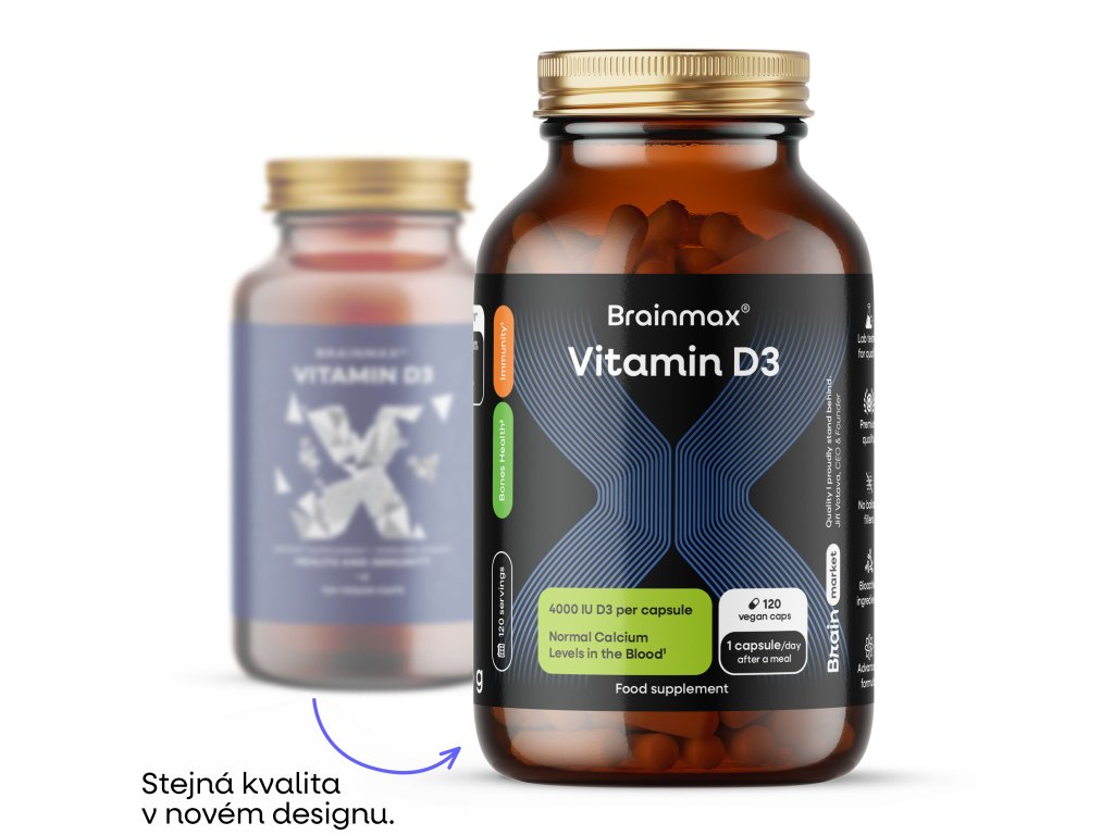Vitamín D3 přispívá k normálnímu vstřebávání vápníku a fosforu, podporuje normální funkci imunitního systému, normální činnost svalů, kostí a zubů. Dávka 4 000 IU (100 µg) představuje horní hranici bezpečného denního příjmu pro dospělé podle evropských autorit. Tato dávka může být vhodná zejména při nízké expozici slunečnímu záření, v podzimních a zimních měsících nebo při zvýšených nárocích organismu. Vyšší dávkování by mělo být vždy individuálně posouzeno, ideálně na základě laboratorního vyšetření hladiny 25 OH vitamínu D v krvi.