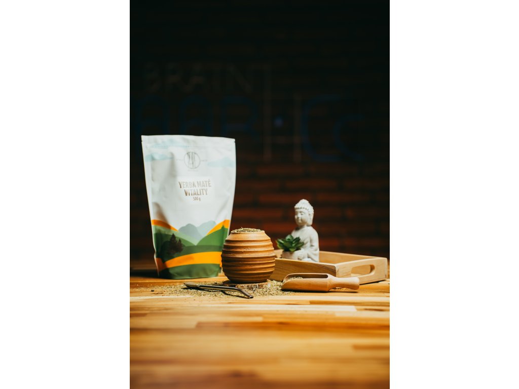BrainMax Yerba Maté Vitality, 500 g Směs brazilské yerby obohacená o plody camu camu a macu pro vitalitu a energii