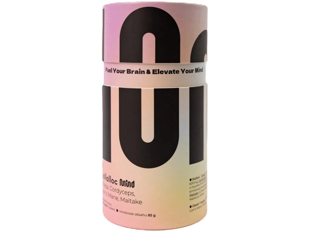 Collalloc Mind je doplněk stravy, který kombinuje sílu čtyř funkčních hub – lion’s mane, cordyceps, chaga a maitake – do jedné kapsle pro každodenní mentální i fyzickou pohodu. Výborně se hodí pro ženy i muže, kteří potřebují zvládat práci, rodinu a osobní život s nadhledem. Díky přírodnímu složení bez cukru, lepku, laktózy a příměsí nezatěžuje organismus. Vyrobeno s péčí v České republice.
