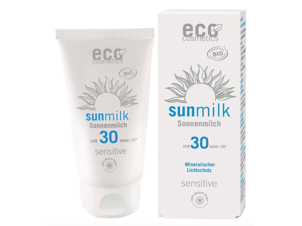 Eco Cosmetics Sun Milk Sensitive, opalovací mléko SPF 30, BIO, 75 ml S BIO olejem z malinových jadérek a BIO granátovým jablkem