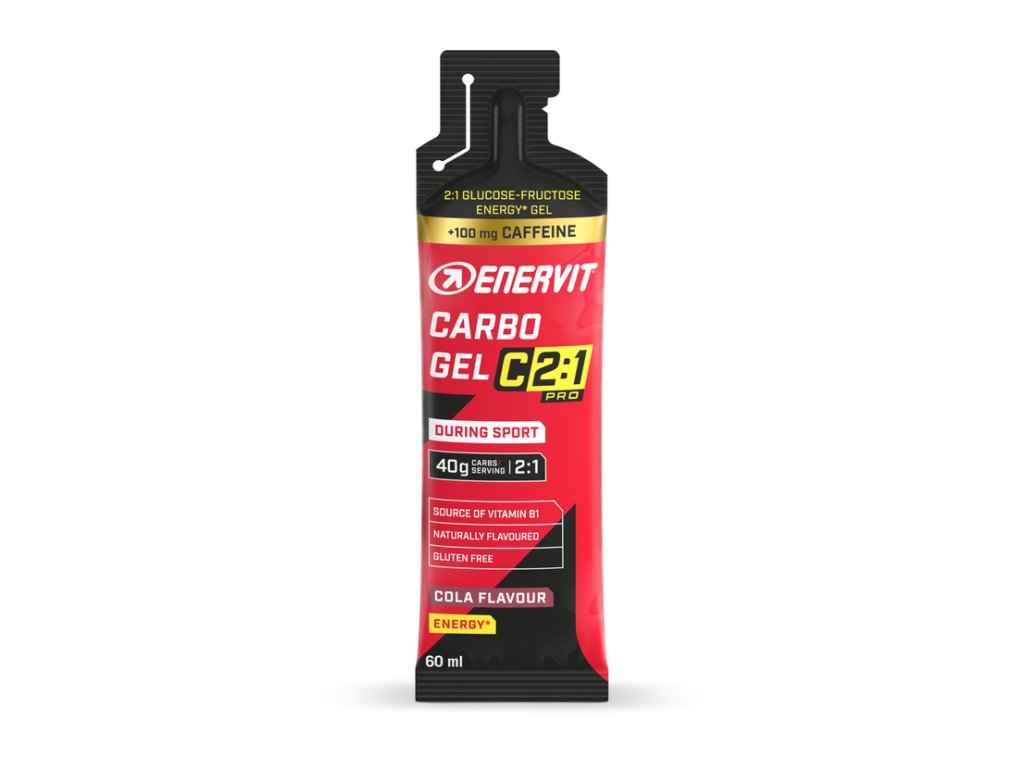 Enervit Carbo Gel C2:1 s kofeinem, cola, 60 ml Bezlepkový gel se sacharidy a kofeinem, doplněk stravy