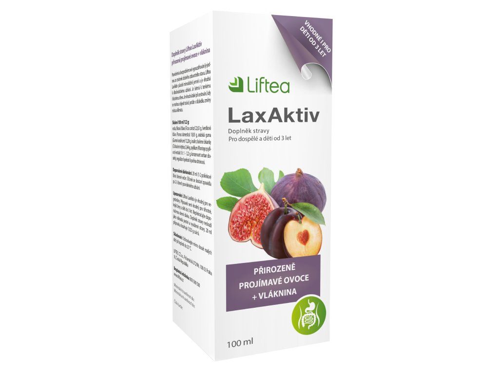 Doplněk stravy Liftea LaxAktiv sirup v podobě sirupu obsahuje ovoce a vlákninu, které umožňují bezproblémové vyprazdňování. Svým složením je produkt uzpůsoben pro dlouhodobé užívání a je vhodný i pro děti od 3 let. Hodí se i při cestování.