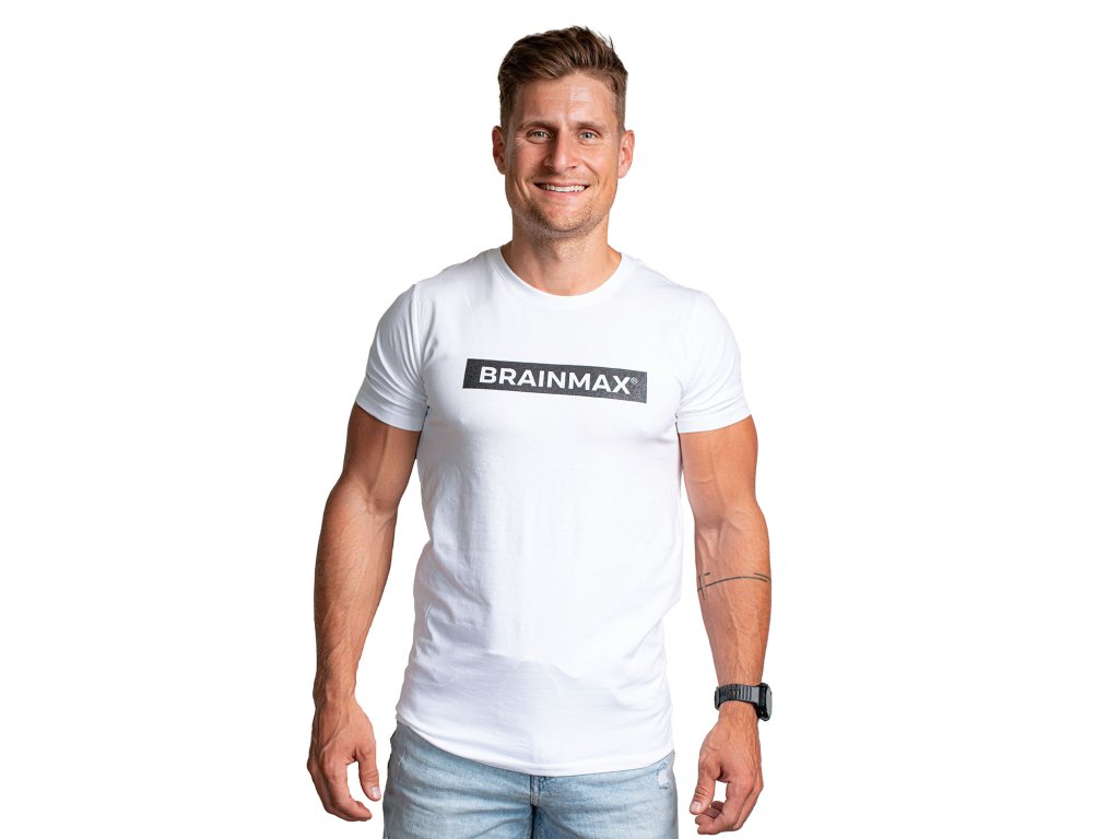 Skvělé padnoucí tričko bílé barvy s logem BrainMax na hrudi je vyrobeno z 95% bavlny a 5% elastanu. Je pohodlné, prodyšné a můžete jej použít jak do města, tak do fitka.
