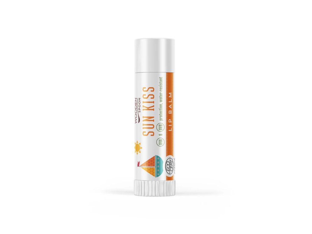 Wooden Spoon Opalovací balzám na rty Sun Kiss, 4,3 ml 100% přírodní balzám s minerální ochranou a kakaovým máslem